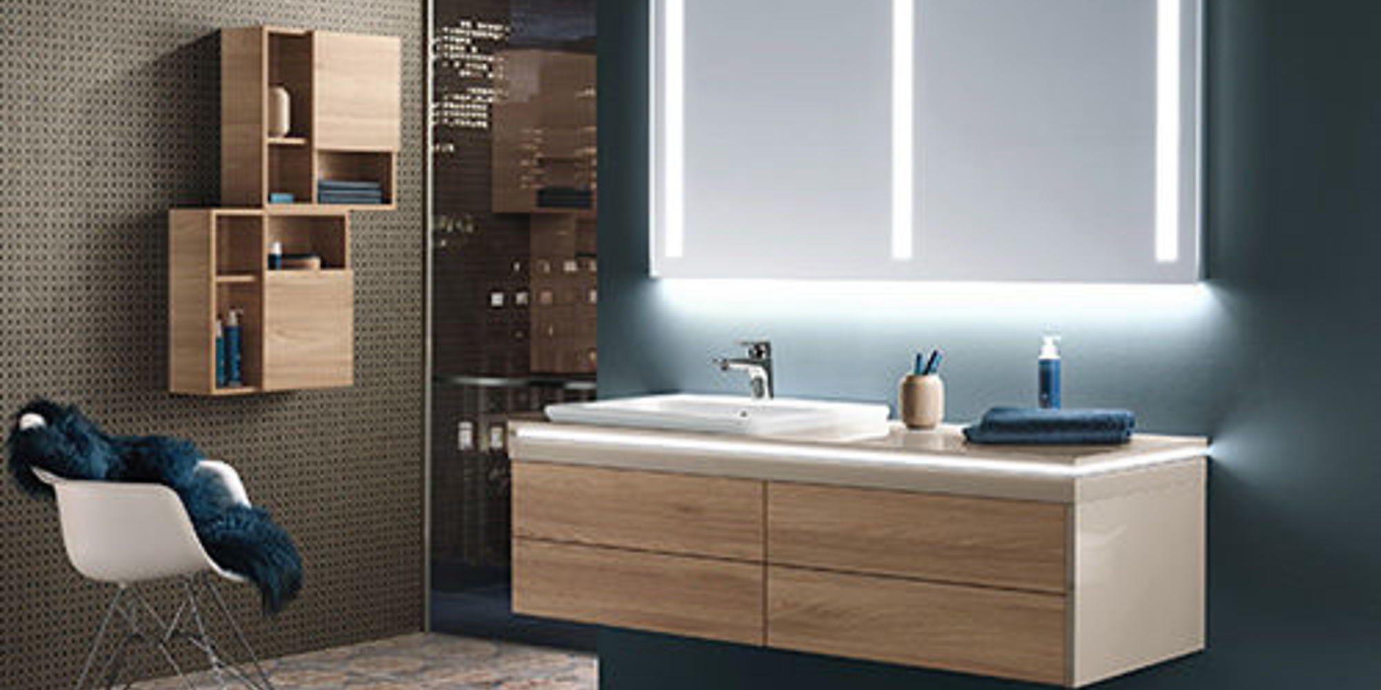 Und sämtliche Griffe, Beschläge, Accessoires und Leuchten sind von bester Qualität. So sind Spiegelschränke und Lichtspiegel ausschließlich mit energieeffizienten LEDs ausgestattet. Alle Elektroteile sind außerdem VDE-geprüft.